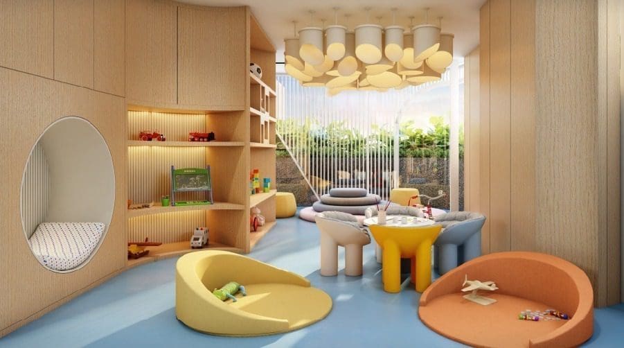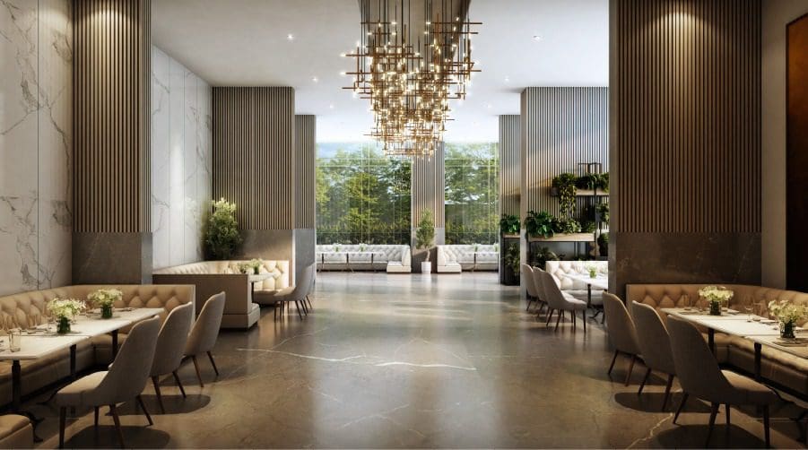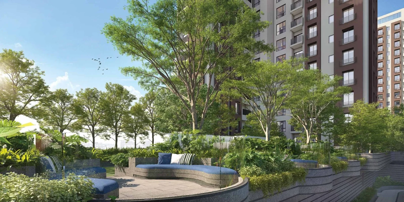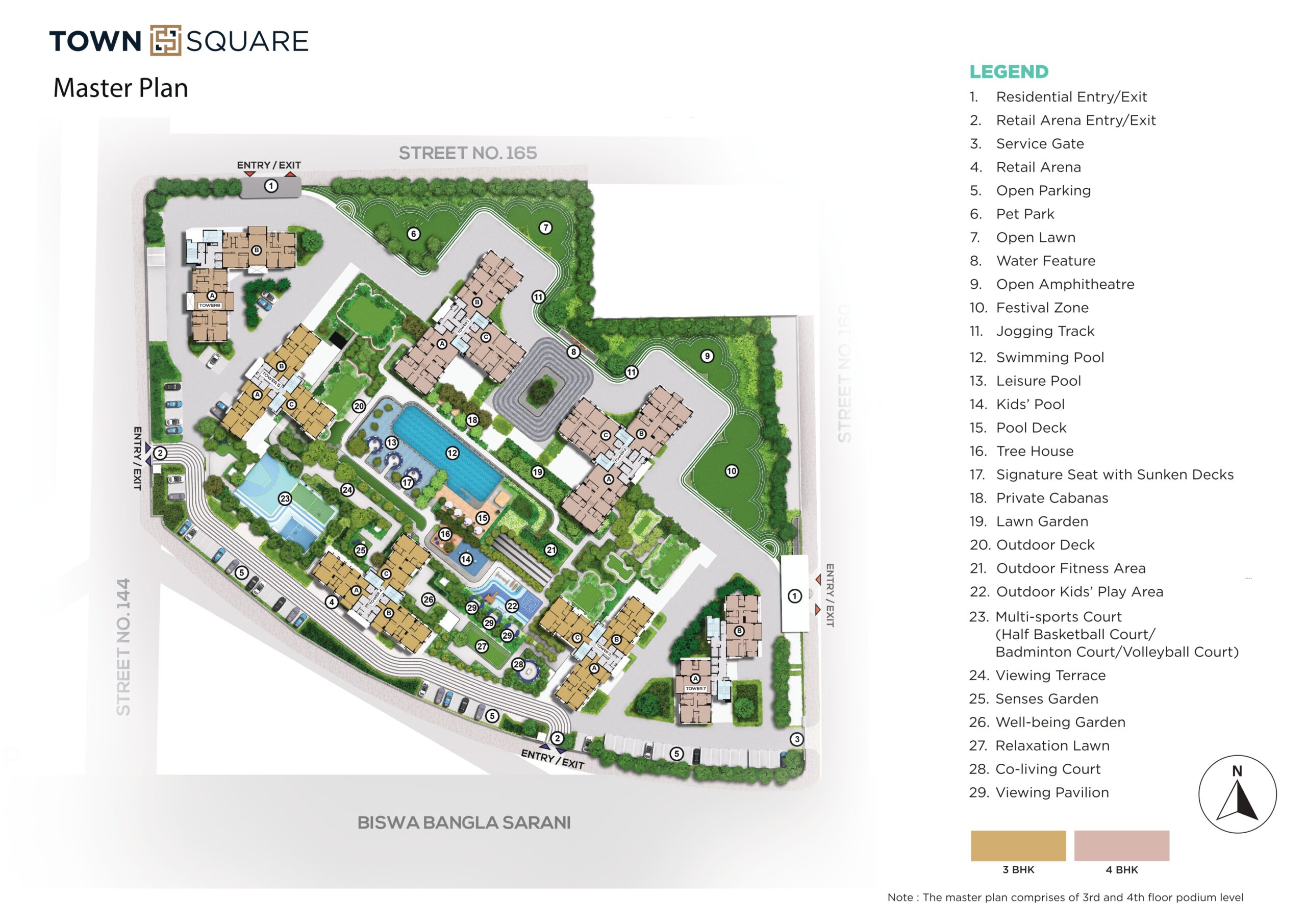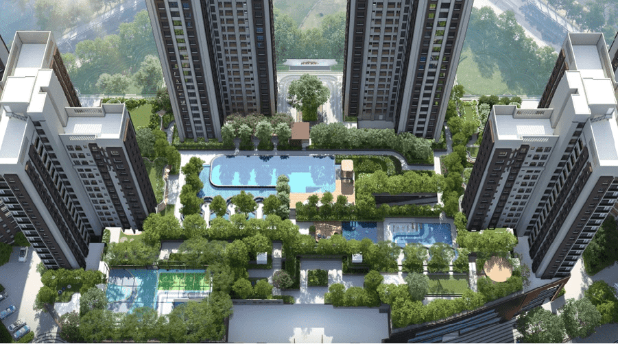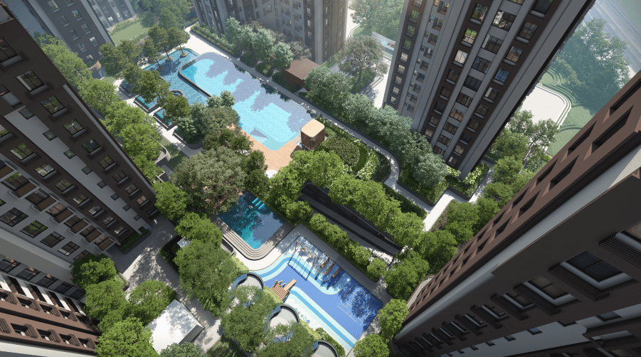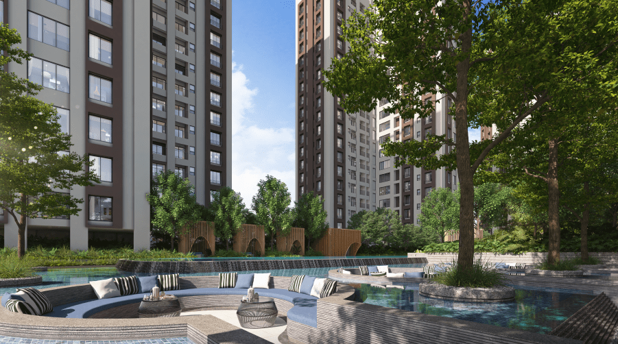 Town Square offers extensive premium amenities designed for modern living, including a 90,000 sq ft podium living with a grand clubhouse designed for leisure, celebrations, and everyday indulgence. Key features include a massive swimming pool with deck, state-of-the-art gymnasium, indoor games room, kids’ play areas, an open amphitheater, and 87% open green space