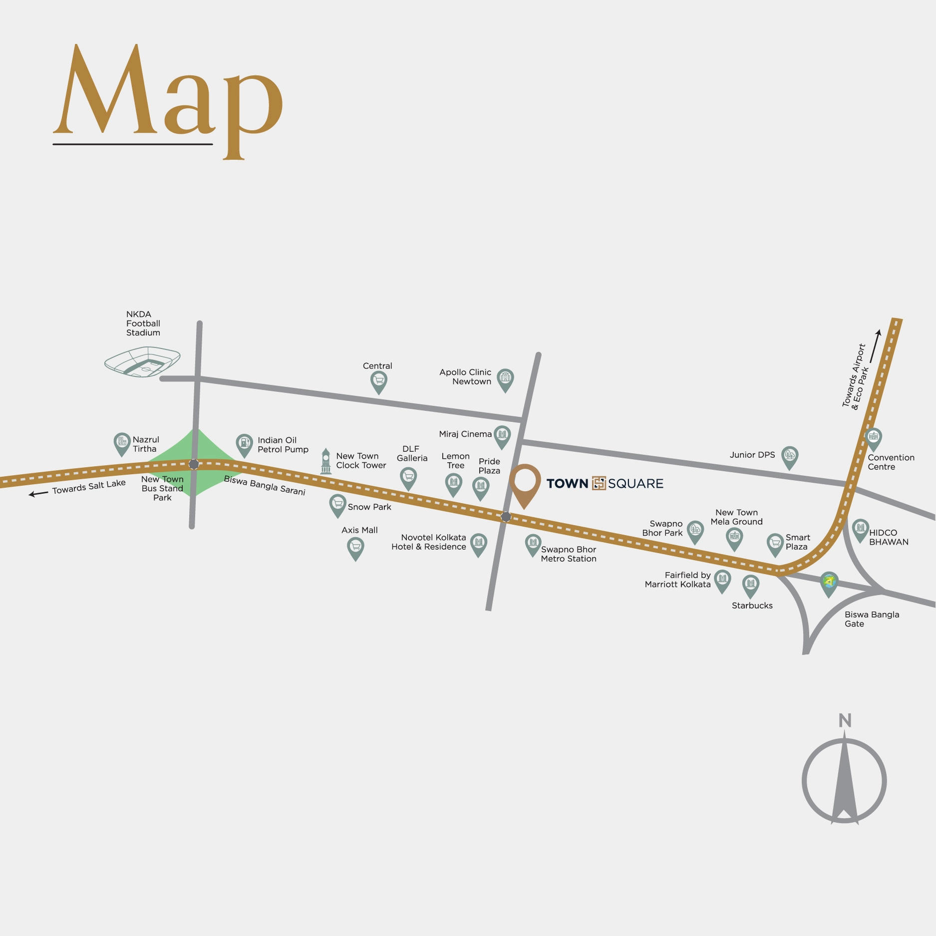 Town Square by Srijan Realty Private Limited is a premium residential development in New Town (The Smart Green City), featuring 7 towers set amidst expansive open spaces with 270° open-view homes and wide sundecks. Anchored by a 90,000 sq. ft. podium with 40+ lifestyle amenities and a 20,000 sq. ft. clubhouse, it offers a complete lifestyle with fitness zones, swimming pools, landscaped greens, social spaces, and high-street retail—designed for modern, connected, and comfortable living.
